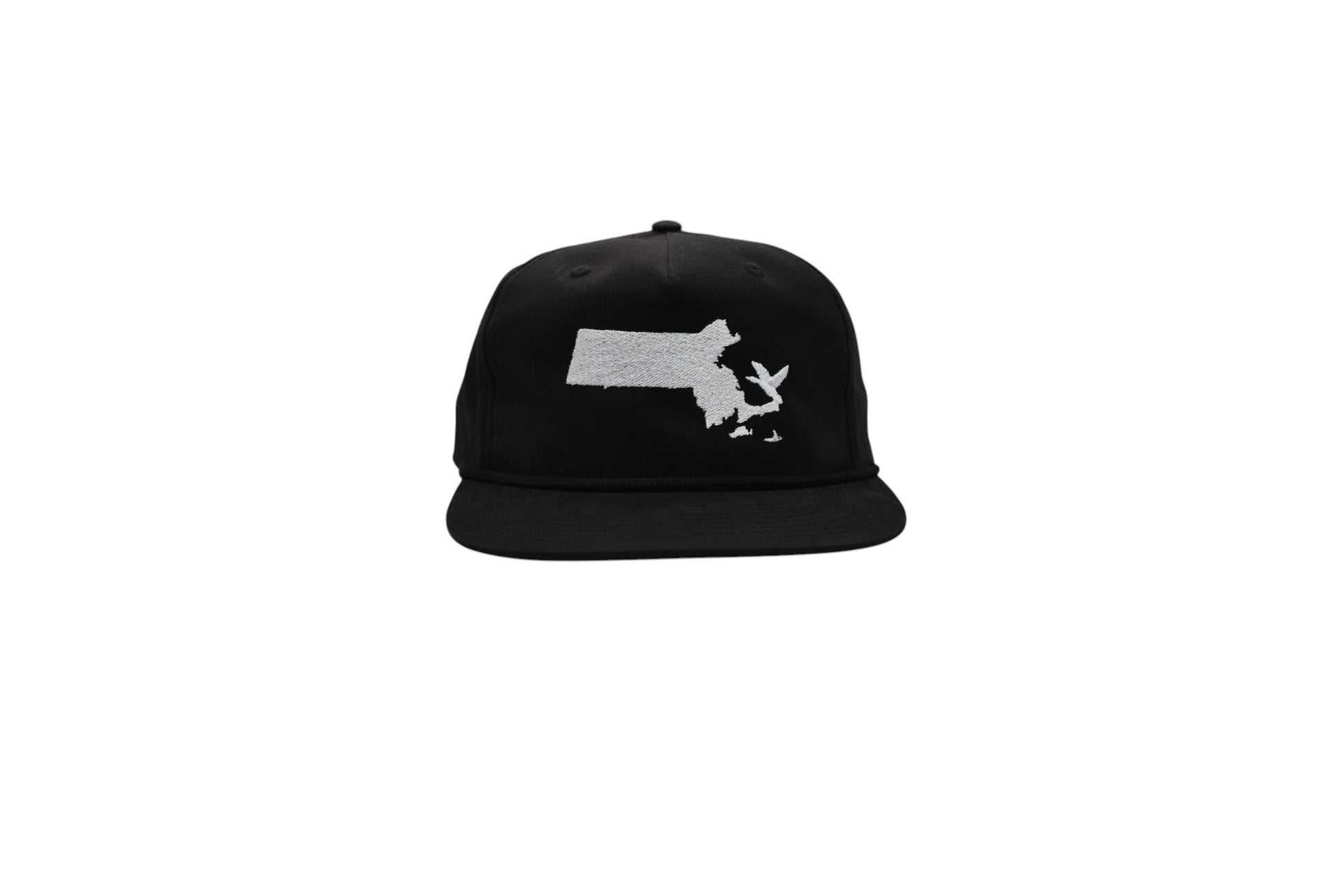 Black Richardson 5 panel hat with black rope and embroidered logo